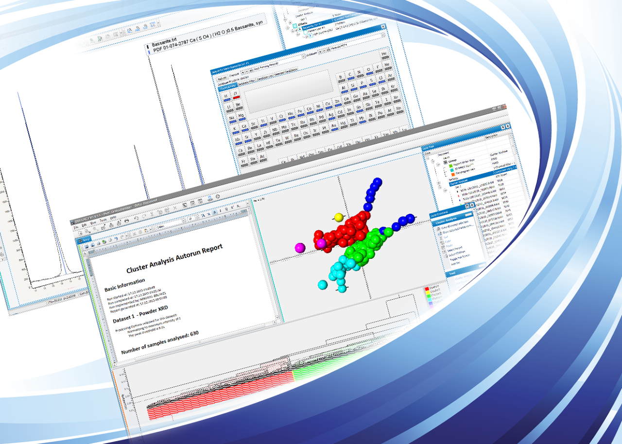 集群在DIFFRAC分析。伊娃是一个工具,它添加了一个主要好处勘探工作。使用聚类分析大数据集包含成千上万的测量各种类型的分组和最具代表性的成员确定为进一步-完全定量检查。无需专业知识不同来源的材料很容易排序和异常值检测。