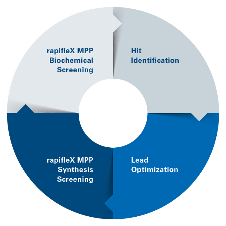 通过质谱法对大型和多样化的化合物库进行超高通量筛选(uHTS),可提供每天超过100,000个样品的吞吐量,并可对含有数百万种物质的化合物库进行全层(一级筛选)筛选。rapifleX MPP是市场上唯一的一级筛级质谱仪。