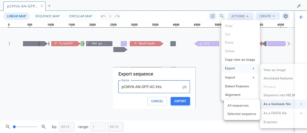 • 创建、导入和导出序列、质粒和向量(支持常见的文件格式)
